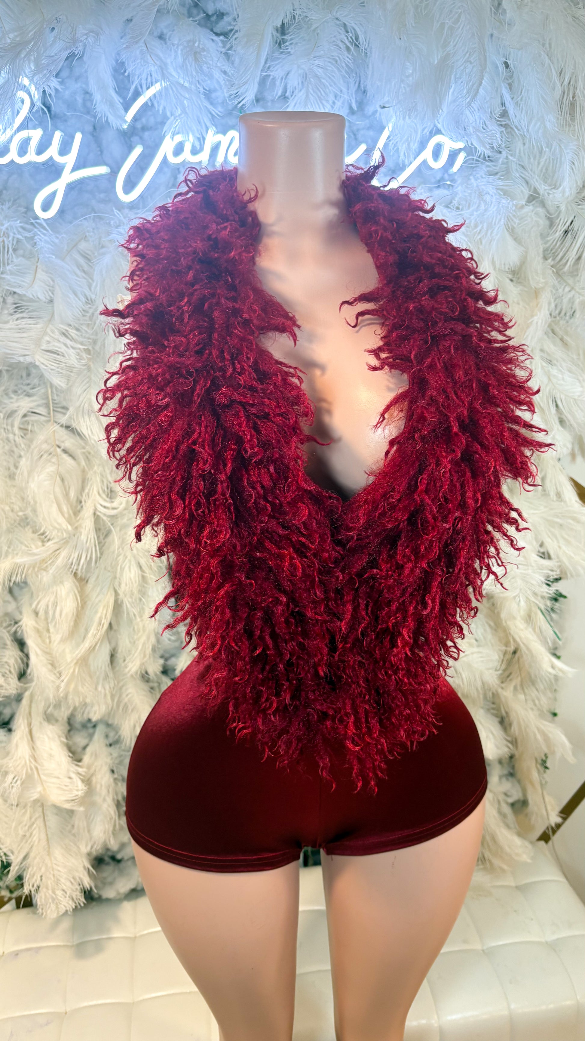 Allure Lifestyle Mongolian Fur Romper- BURGUNDY