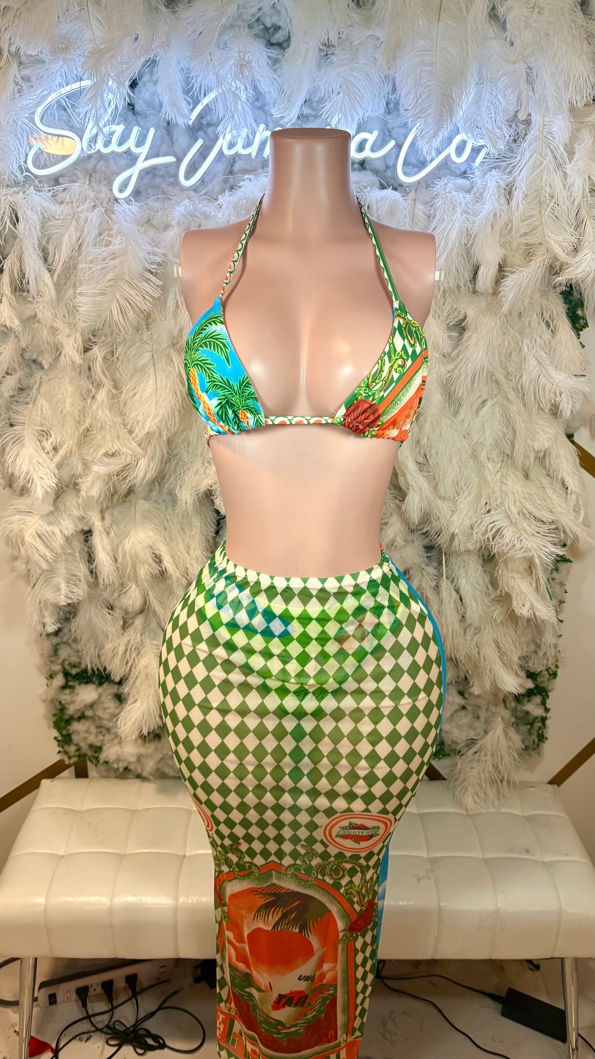 READY TO SHIP Miss Caicos Three Piece Skirt Set With Matching Headscarf