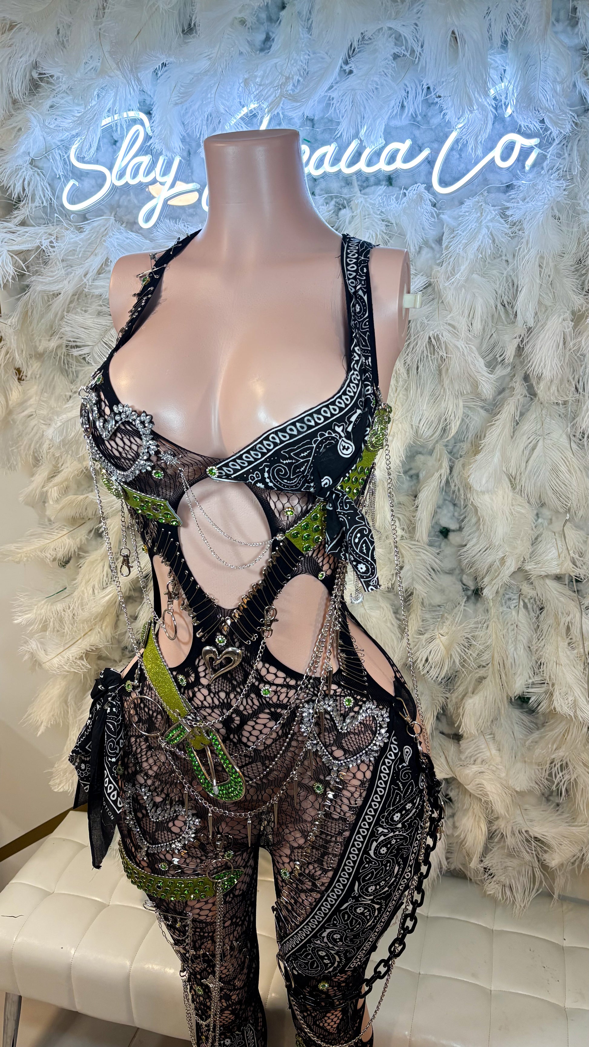 READY TO SHIP Slimerella Embellished Mesh Jumpsuit
