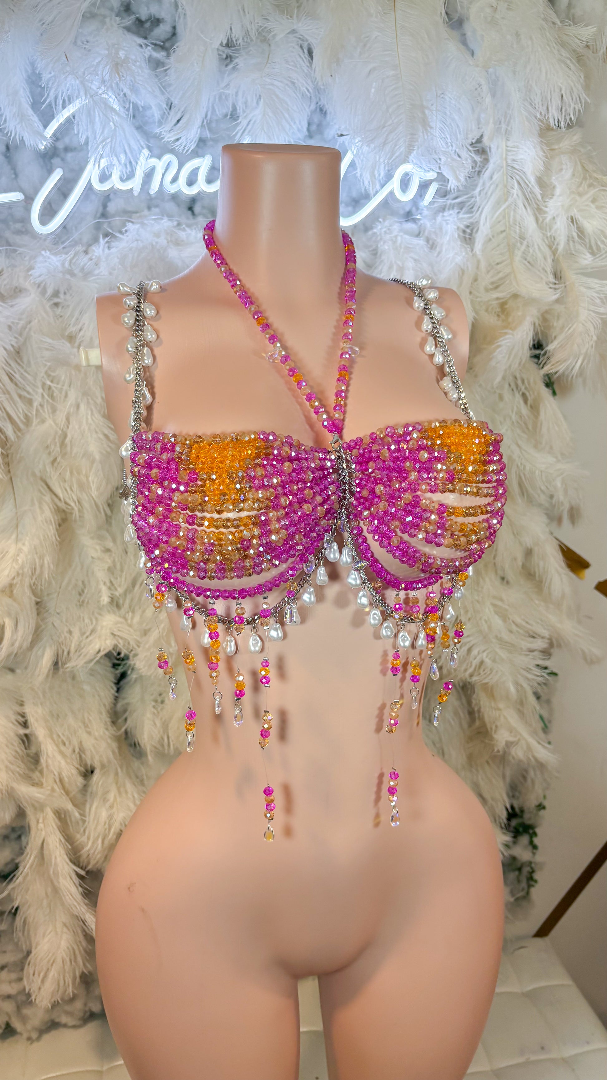 READY TO SHIP Tequila Sunrise Pearl Beaded Top - Pink/ Orange